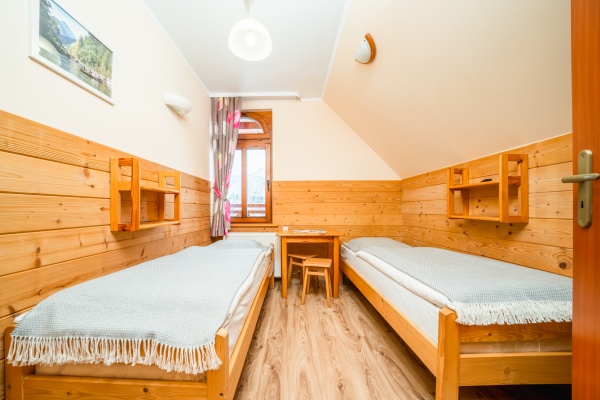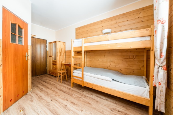 Posiadamy 44 miejsca noclegowye o bardzo wysokim standardzie. Oferujemy pokoje do wynajęcia 2-, 3-, 4- i 5-osobowe. Każdy pokój oferuje przytulne wnętrze wykończone drewnem z telewizorem, większość posiada łazienkę. W naszej ofercie noclegowej jest również kilka miejsc w pokojach, bez pełnego węzła higieniczno-sanitarnego.